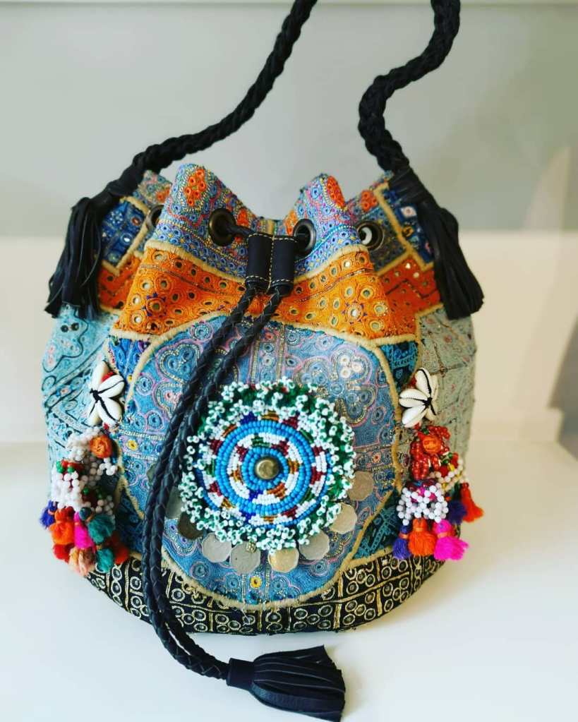 Queste borse sono realizzate con un tessuto antico, in cotone ricamato a mano dalle donne Banjara che vivono nel deserto del Rajastan in India. Arricchite con specchi, perline, monete antiche e medaglioni si trasformano in favole di colori ed emozioni, preziosi. Pezzi unici!